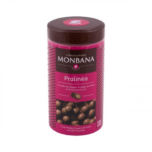 Monbana Pralinea ir garšīgs kraukšķīga šokolāde. Alvā ir graudaugi, kas pārklāti ar mīkstu piena šokolādi. Šo garšu kombinācija apmierinās katru. Eleganta un estētiska kastīte padara šos franču saldumus par lielisku dāvanu mīļajiem.