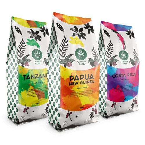 Kafijas pupiņu komplekts Coffee Guru “Tanzania + Papua New Guinea + Costa Rica”