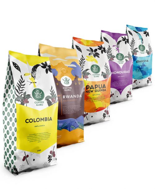 Kafijas pupiņu komplekts “Ethiopia + Honduras + Colombia + Papua New Guinea + Rwanda”, 5kg