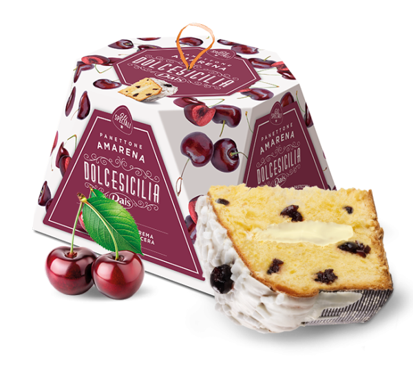 Kūka Dolce Sicilia Panettone ar sukādēm, meža ķiršiem, putukrējumu un vaniļas glazūru 800g