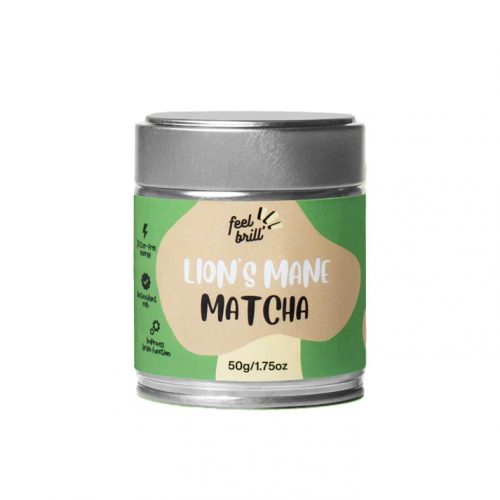 Premium matcha zaļā tēja ar Lion's Mane sēņu pulveri. Lion's Mane sēne ir pazīstama ar savām smadzeņu darbību uzlabojošajām īpašībām, kas