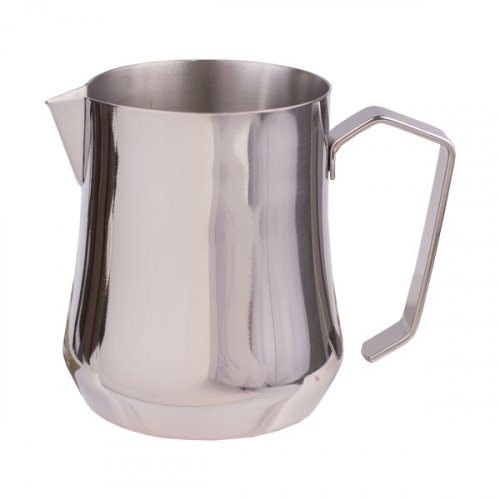 Profesionāla krūze piena putošanai no Motta Metallurgica - vienas no labākajām Itālijas rūpnīcām, kas ražo izstrādājumus no nerūsējošā tērauda.