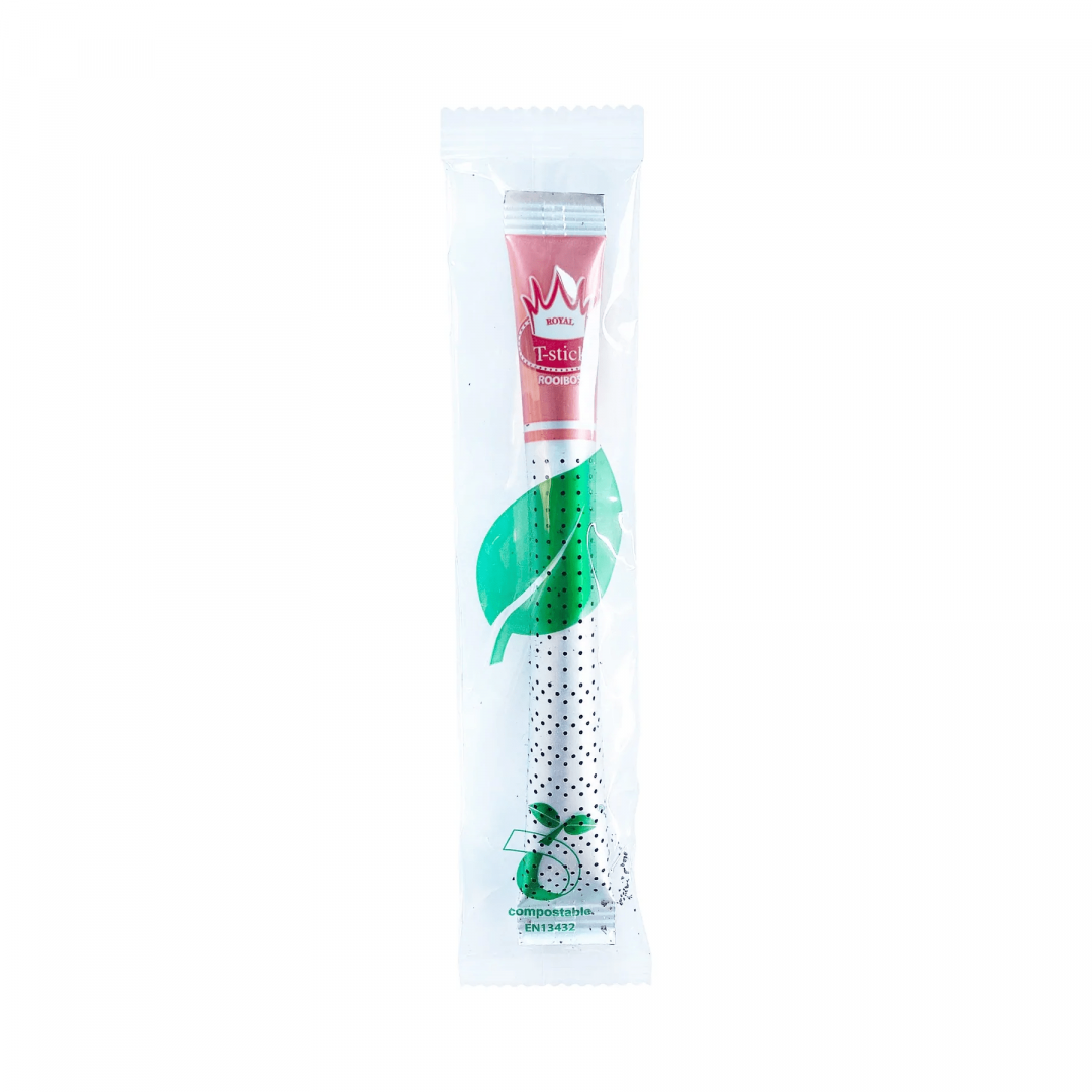 Royal T-Stick Rooibos Tea ir tējas maisījums, kas pazīstams ar savu saldo un riekstu aromātu. Rooibos burtiski nozīmē "sarkanais krūms". Šai Dienvidāfrikas tējai ir maiga un salda garša ar riekstu nokrāsu. Atšķirībā no melnās tējas, šai tējai nav kofeīna un gandrīz nav tanīna. Tējas nūjiņu iepakojums "Royal T-sticks" ir paredzēts īpaši vienkāršai un ērtai lietošanai. Atliek vien ielikt tējas kociņu verdošā ūdenī, izmaisīt un tava tēja būs gatava! Maisot un ilgāk paturot krūzītē, var izveidot vēlamo tējas garšas un aromāta intensitāti.