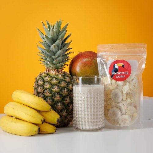 - Sastāvs: 63% banāni, 25% mango, 12% ananāsi