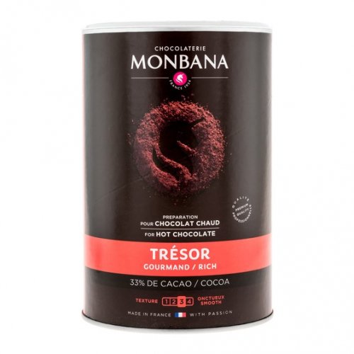 Vienkārši izmēģiniet unikālo Monbana šokolādes pulveri. Recepte pagatavošanai: 200 ml karsta piena - 1 tējkarote Tresor šokolādes pulvera (apmēram 25g). Papildus garšai var piejaukt sīrupu. Kakao sastāvs 33%.